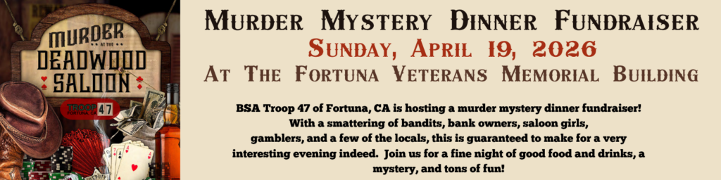 The Fortuna, CA Walker Bailey American Legion Post #205 is proud to charter both boys and girls Scouts BSA Troops. Troop 1047 for boys and Troop 8047 for girls that we collectively call Troop 47. Currently the Troops meet and plan jointly but are able to take on separate events, activities and adventures as they choose. Join today at BeaScout.org.